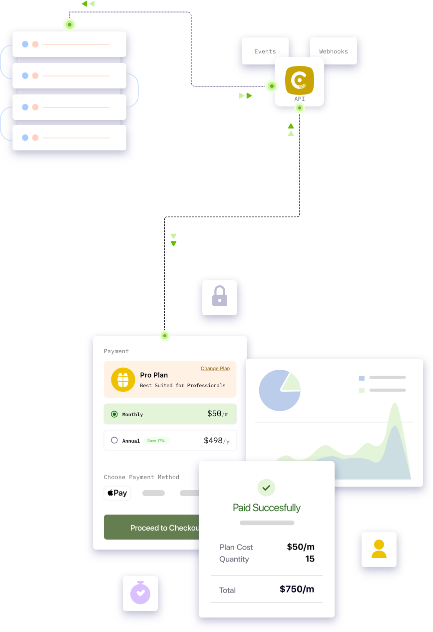 Consider Chargebee as your off-the-shelf plug-&-play billing solution delivered on the cloud. You can connect with Chargebee via API if you are technically inclined or use the PCI compliant hosted payment pages to collect payments, to go-live in minutes.